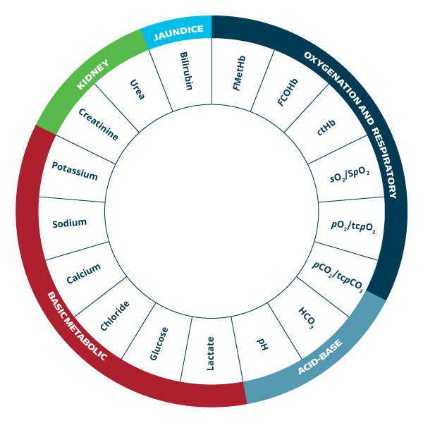 La solución que combina gases en sangre y monitorización transcutánea le proporciona información detallada sobre el estado respiratorio y metabólico del neonato.