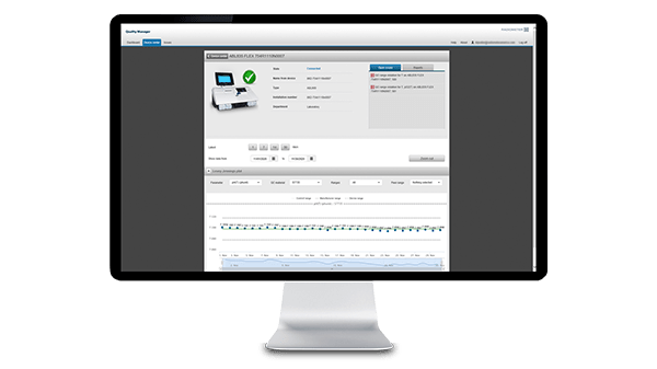 Quality Manager recopila el rendimiento diario y mensual del control de calidad de sus analizadores ABL de Radiometer conectados en tiempo real. Puede inspeccionar, procesar y notificar estos datos desde un único punto de acceso, todo ello sin levantarse de su escritorio.